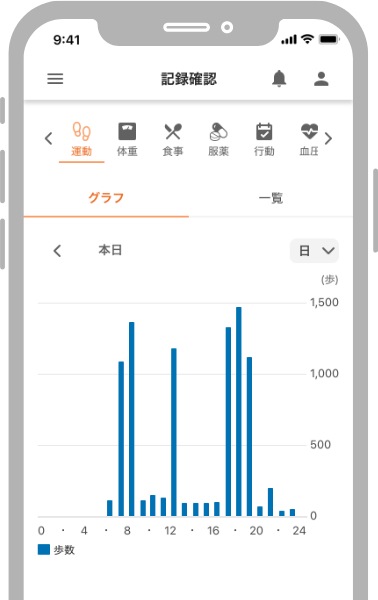 自分の自己管理記録を医療者に共有することで、医療者による患者一人一人の理解の向上につなげます。(※Welbyマイカルテ導入医療機関に限ります。)